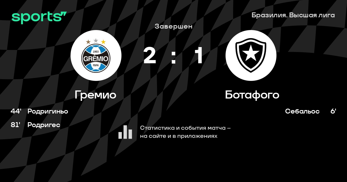 Гроэ - Брено, Брессан, Верлей, Пара - Рамиро, Риверос, Руис, Родригиньо - Баркос, ДудуЗапасные: Машовски, Саймон, Маркиньос Педрозо, Мойзес, Зе Роберто, Эдиньо, Родригес, Эвертон, Лукас Коэльо