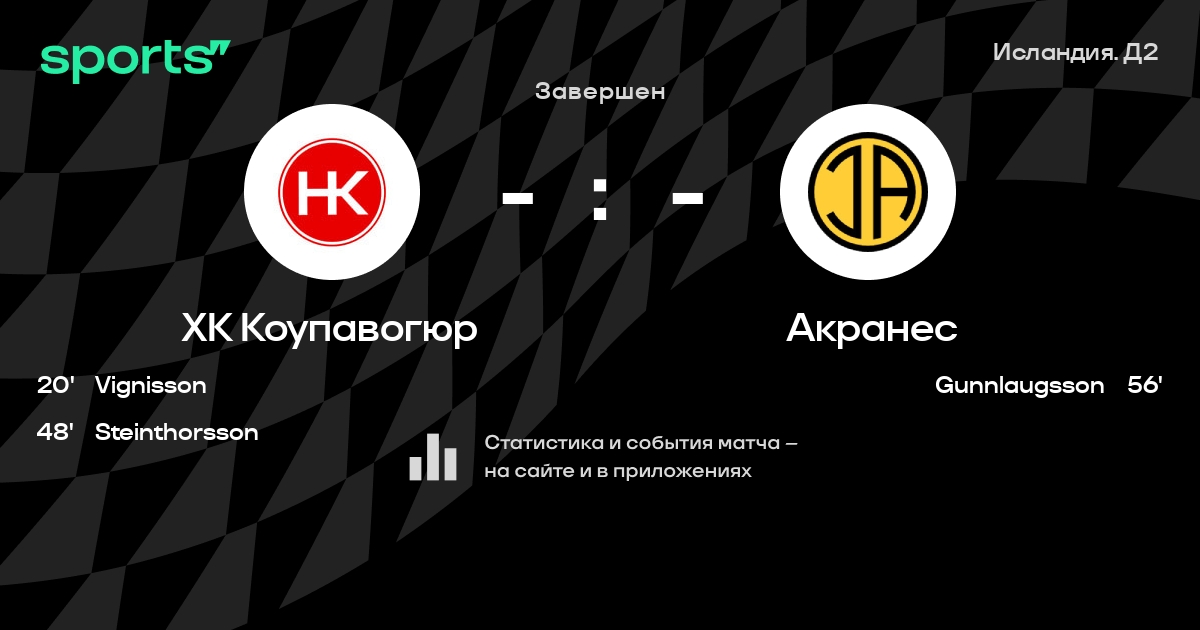 Ólafsson - Лау, Pétursson, Gudmundsson, Бьорнссон - Karlsson, Gudjonsson, Valdimarsson, Хлинссон - Ákason, Bergmann GunnlaugssonЗапасные: Jónsson, Адольфссон, Kristinsson, Flosason, Gylfason, Hjartarson