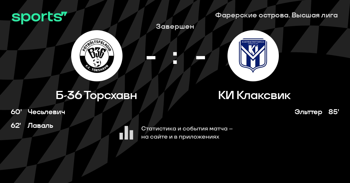 Юнсен - Kalsø, Кристиансен, Гуйе, Симонсен - Joensen, Клакстейн - Gonçalves de Oliveira Lopes Silva, á Lakjuni, Клеттскар, ЭльттерЗапасные: Sigurdsson, Hansen, Frederiksberg, Simonsen, Юстесен