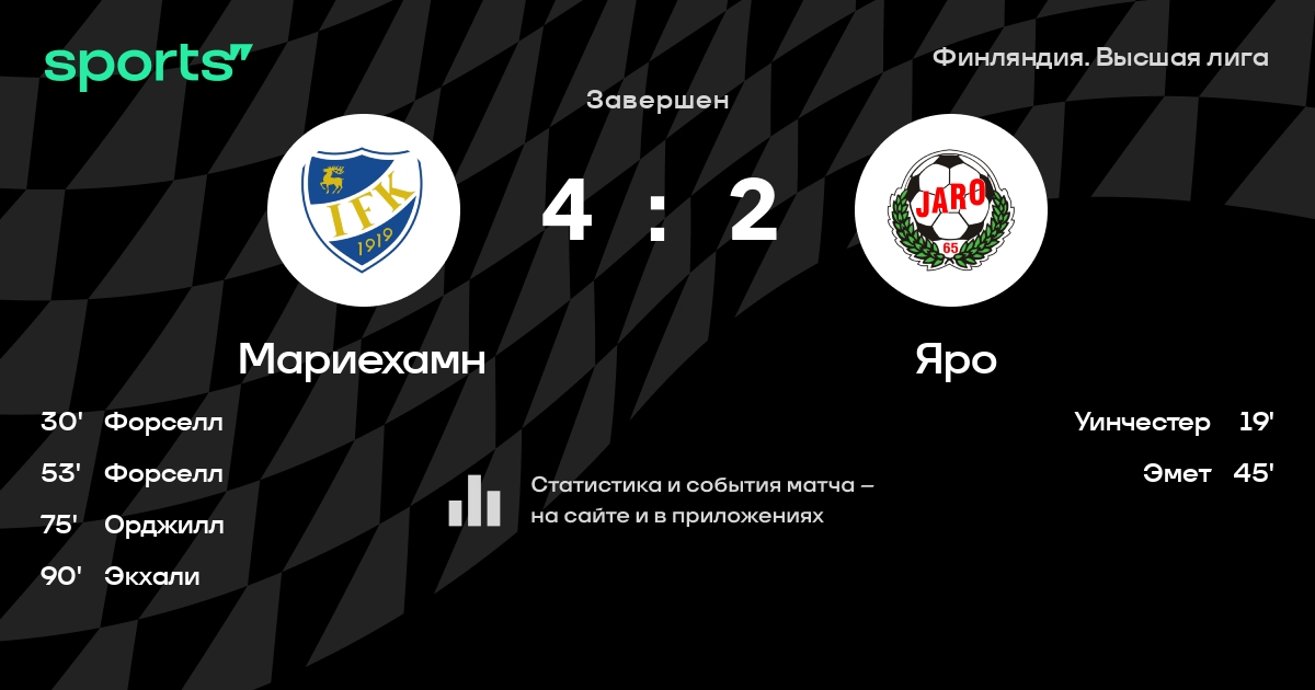 Forsstrom - Томпсон, Виртанен, Лююски, Гранлунд, Бюската, Фриберг - Градецки, Рибейро, Форселл - СолиньякЗапасные: Нордквист, Lundberg, Рамадингайе, Экхали, Таммилехто, Орджилл, Мякеля