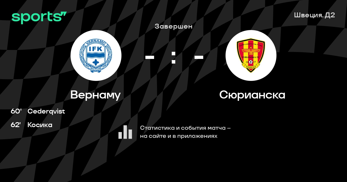 Åkesson - Энгстрем, Winsth, Claesson, Энглунд - Гуту, Göransson, Гаэте-Моджа, Косика, Юханссон - CederqvistЗапасные: Андерссон, Henningsson, Löw, Brandt, Ferizi, Фади