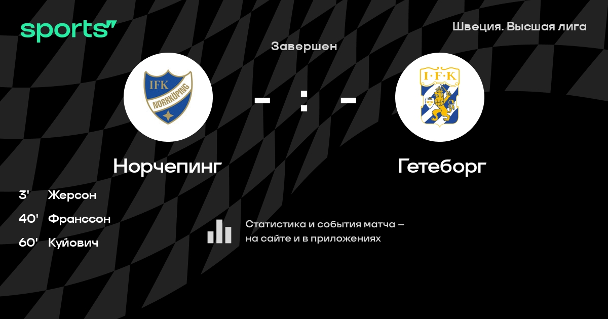 Альвбоге - Аугустинссон, Свенссон, Бьерсмюр, Саломонссон, Вэлер - Рикс, Смедберг-Даленсе, Юханссон - Энгвалль, ВибеЗапасные: Саннберг, Йонссон, Юханссон, Алланссон, Малангу, Кальво, Бом
