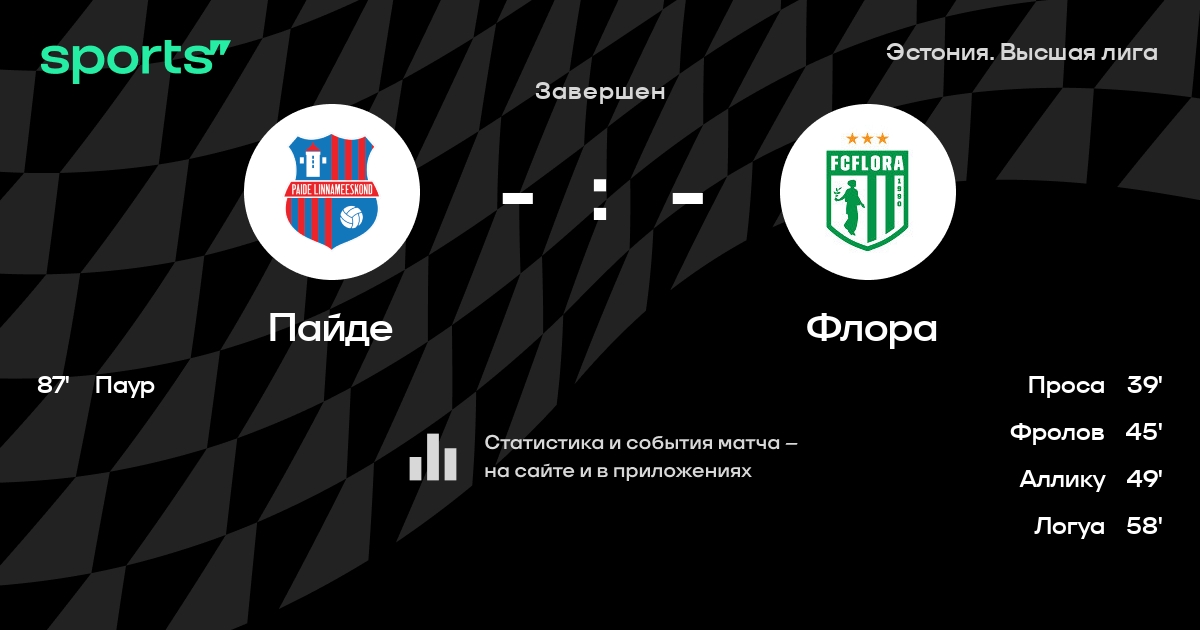Принс - Метс, Баранов, Леписту, Йюргенсон - Бегларишвили, Junolainen, Фролов - Аллику, Логуа, ПросаЗапасные: Карофельд, Ряхн, Касе, Шлейн, Гусев, Саппинен
