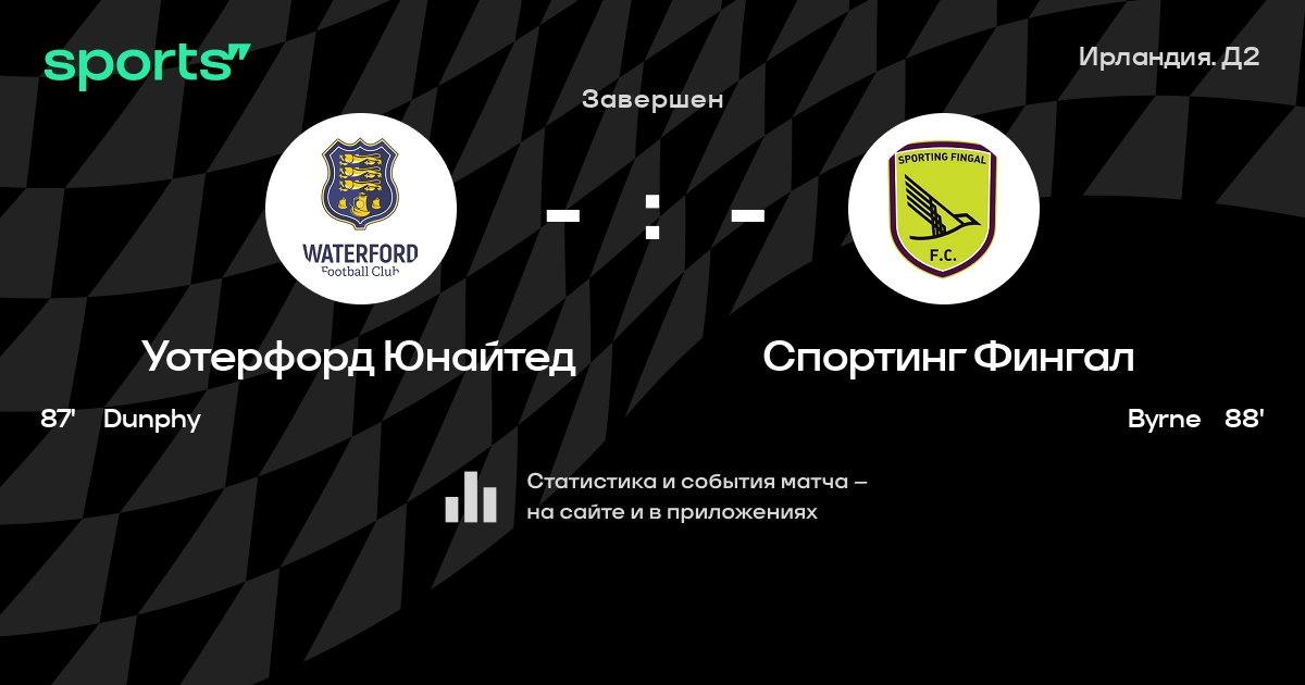Уотерфорд Юнайтед - Спортинг Фингал: статистика матча