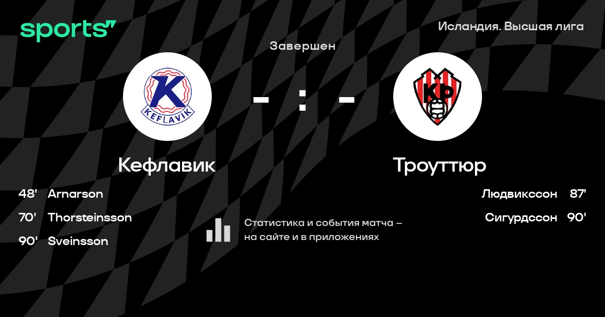 Jörgensen - Антониуссон, Gudmundsson, Sutej - Adalsteinsson, Einarsson, Matthíasson, Самуэльсен, Vídisson - Sveinsson, Thorsteinsson