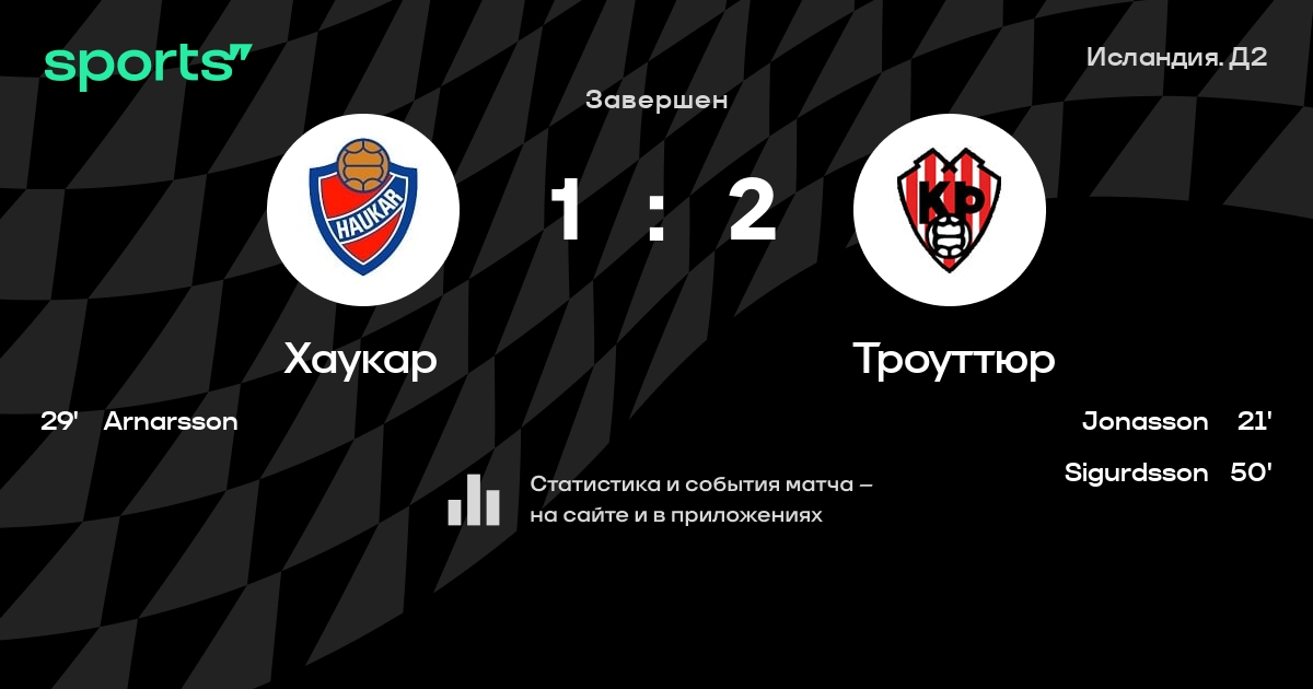 Сигурдарсон - Arnarsson, Gudmnudsson, Трастарсон - Бенедиктссон, Паульссон, Hreidarsson, Ingólfsson - Стефанссон, De Souza, EidssonЗапасные: Gunnarsson, Sindrason, Pálsson, Emilsson, Сайварссон, Gunnarsson, Johannsson