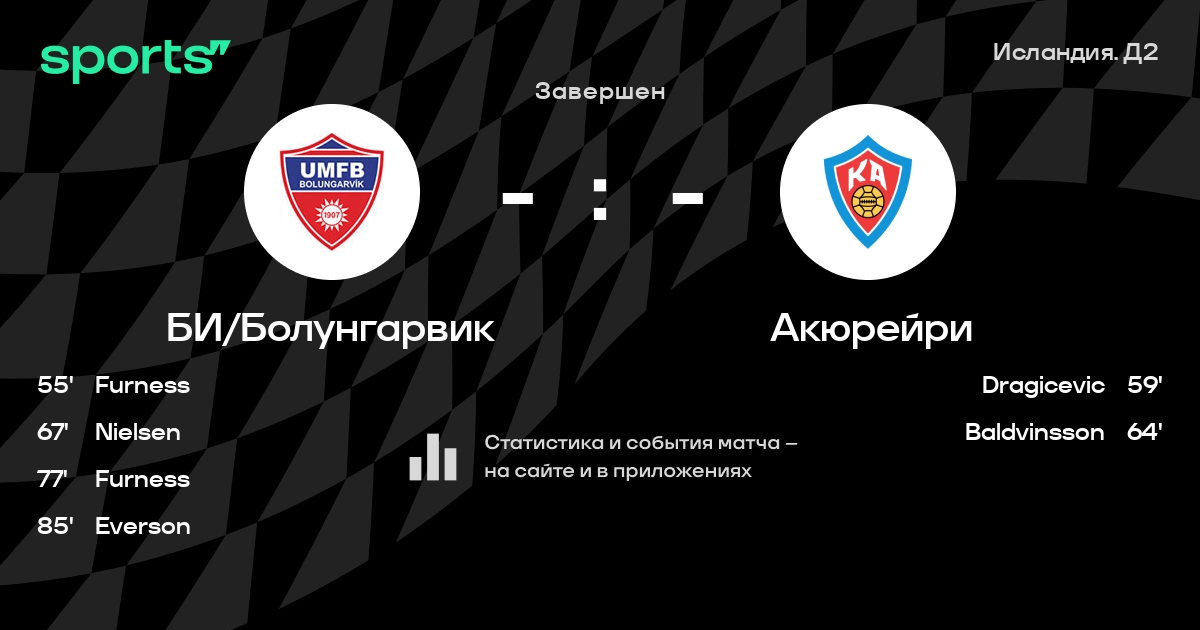 Беренгер - Jóhannsson, Gíslason, Mbang Ondo, Nielsen - Elíasson, Helgason, Osafo-Badu, Furness, Хлинссон - EversonЗапасные: Petursson, Sveinsson, Einarsson, Jónsson, Thorarinsson, Abnett, Бьярнасон