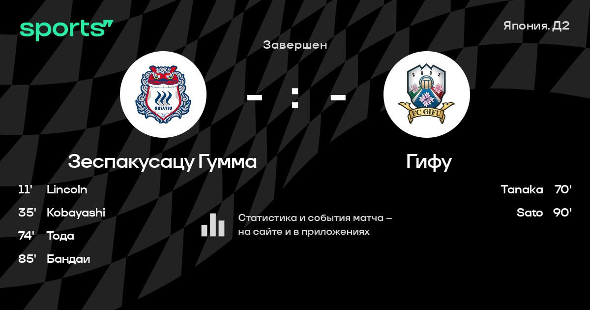 Kita - Nakamura, Arizono, Nagata - Kobayashi, Matsushita, Kumabayashi, Hayashi - Goto, Кобаяси, Lincoln MartinsЗапасные: Hashida, Hoshino, Sugimoto, Бандаи, Алекс Энрике