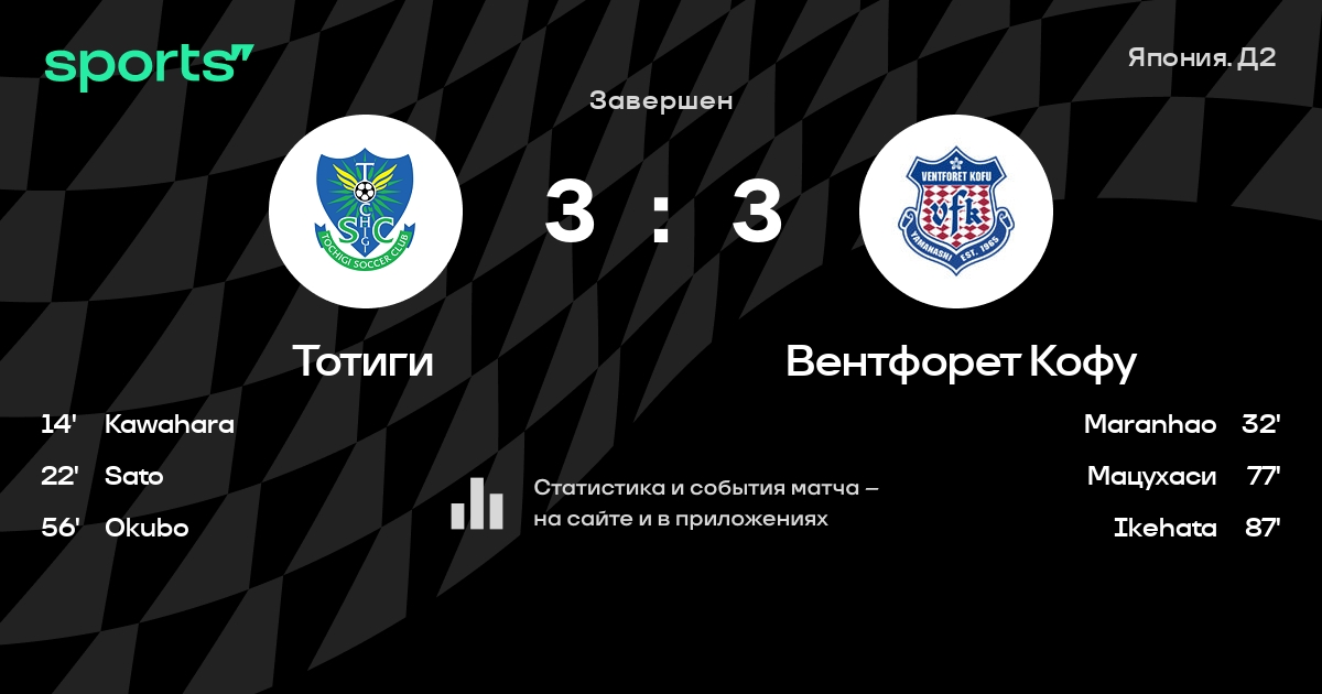 Kobari - Okada, Inoue, Akai, Yoneyama - Sato, Kamoshida, Motohashi - Matsuda, Inaba, Kawahara