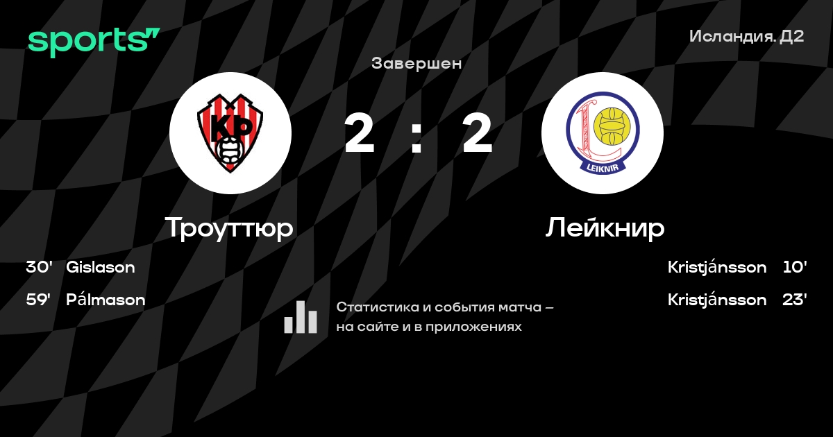 Tómasson - Jósepsson, Эйнарссон, Гудмундссон - Krickic, Халльдорссон, Хледверссон - Kristjánsson, Jónsson, Eggertsson, BaldvinssonЗапасные: Rúnarsson, Jónsson, Бенедиктссон, Björnsson, Бьорнссон, Wigelund, Daníelsson
