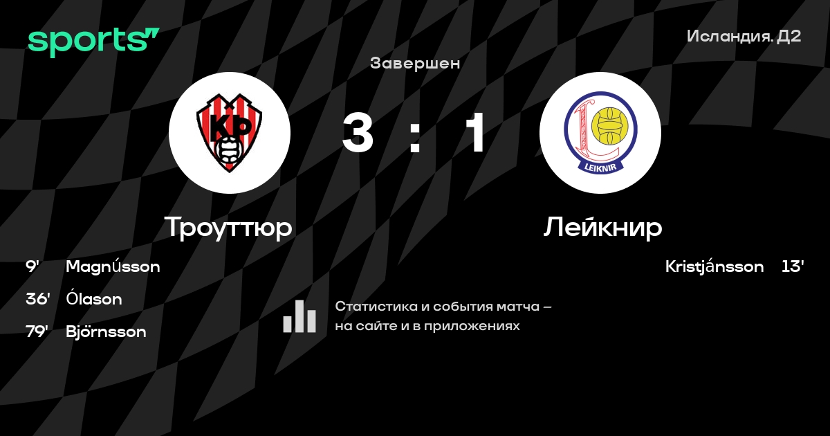Sigurbjornsson - Hallsson, Pálsson, Ómarsson - Атласон, Ivkovic, Hilmisson, Magnússon, Ólason - Hermannsson, JonassonЗапасные: Ólafsson, Gudmundsson, Björnsson, Kjartansson, Björnsson, Kristinsson, Бергссон