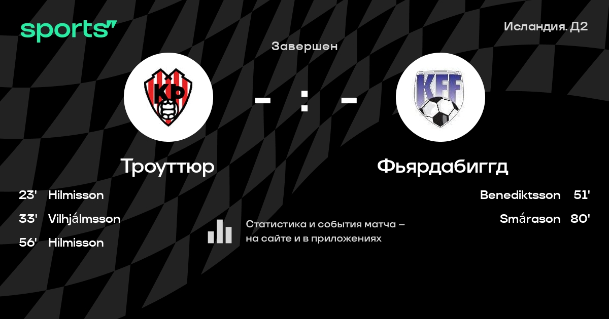 Бьорнссон - Sveinsson, Bjarnason, Lárusson, Hallsson, Ómarsson - Hilmisson, Magnússon, Ivkovic - Vilhjálmsson, SadikovicЗапасные: Thórarinsson, Pálsson, Björnsson, Ólason, Pálmason