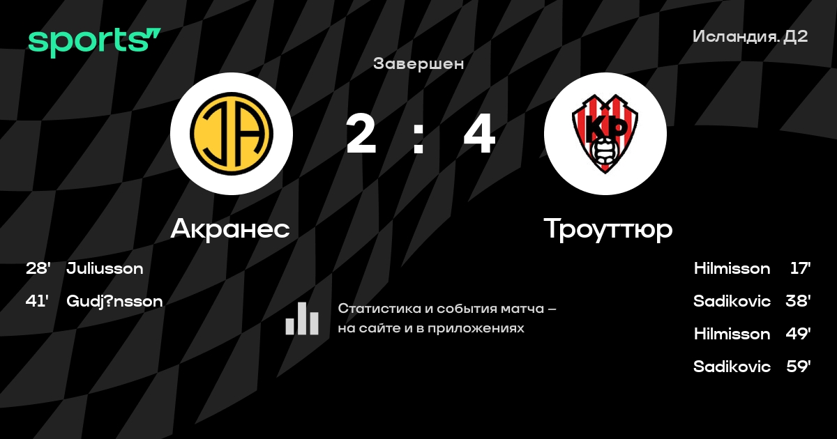 Бьорнссон - Lárusson, Björnsson, Pálsson, Ómarsson, Gudmundsson - Hilmisson, Magnússon, Ólason, Ivkovic - SadikovicЗапасные: Thórarinsson, Sveinsson, Bjarnason, Sigmundsson, Gunnarsson