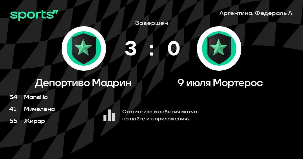 Трансляция Депортиво Мадрин - 9 июля Мортерос
