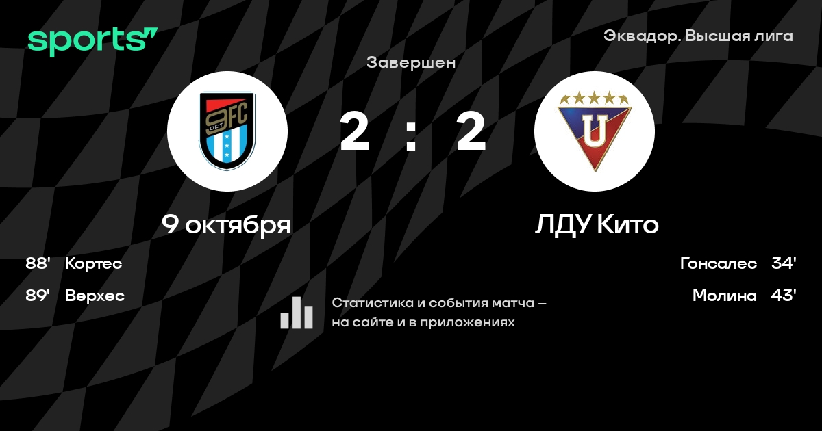 9 октября – ЛДУ Кито: ЛДУ Кито забивает в 3 последних матчах против этого соперника