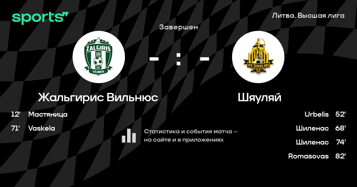 Трансляция Жальгирис Вильнюс - Шяуляй