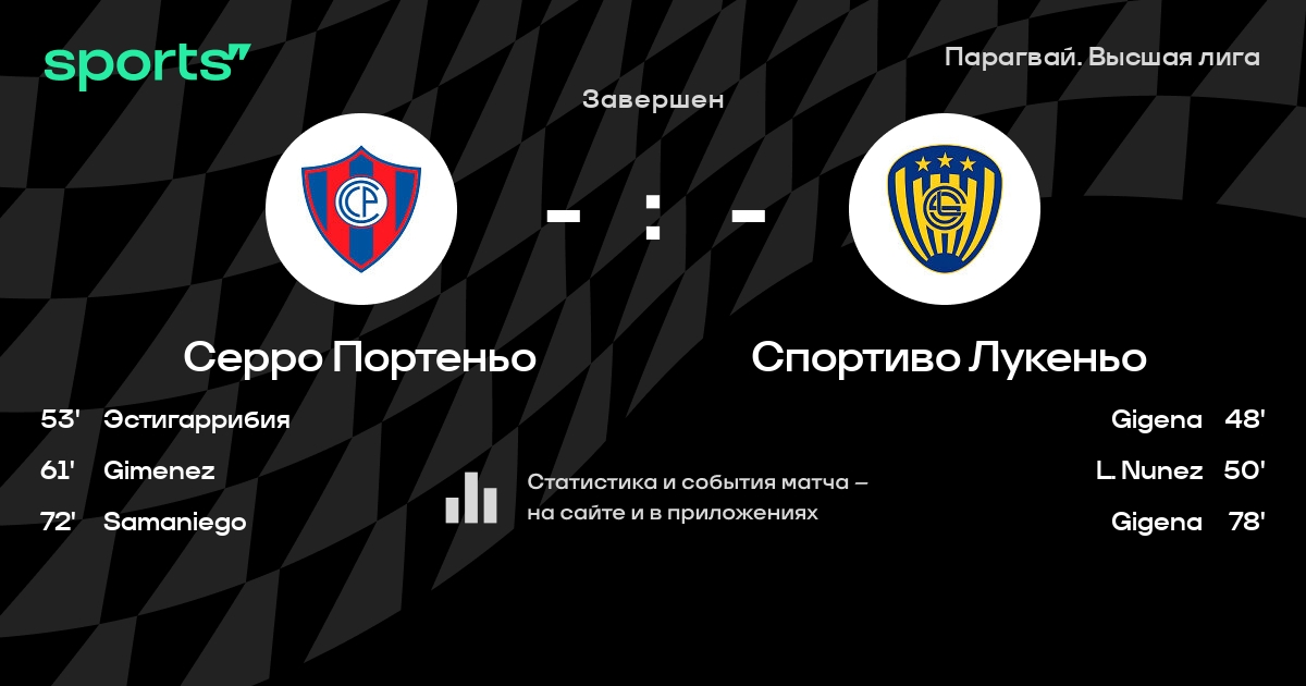 Трансляция Серро Портеньо - Спортиво Лукеньо