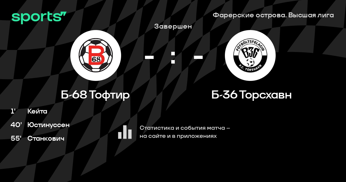 | 1 | ХБ Торсхавн | 27 | 16 | 7 | 4 | 59 | 37 | +22 | 55 | ||