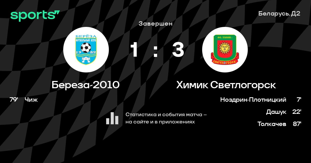 Береза-2010 - Химик Светлогорск: составы на матч