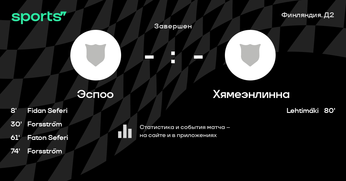 Forsstrom - Björkstrand, Tallqvist, Perera, Thibault - Корхонен, Roschier, Forsström, Halonen - Seferi, SeferiЗапасные: Aaltonen, Armean, Heiskanen, Kallonen, Eskola, Matrone