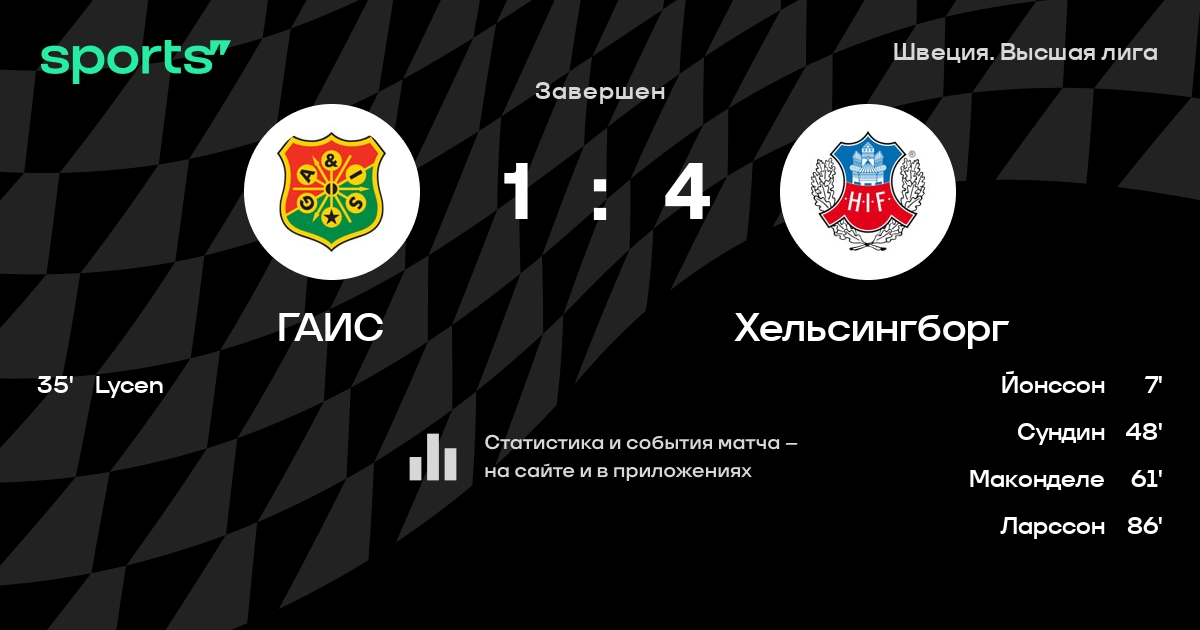 Ханссон - Хольгерссон, Экстранд, Нильссон, Андерссон - Ландгрен, Маконделе, Лантц - Larsson, Йонссон, Сундин