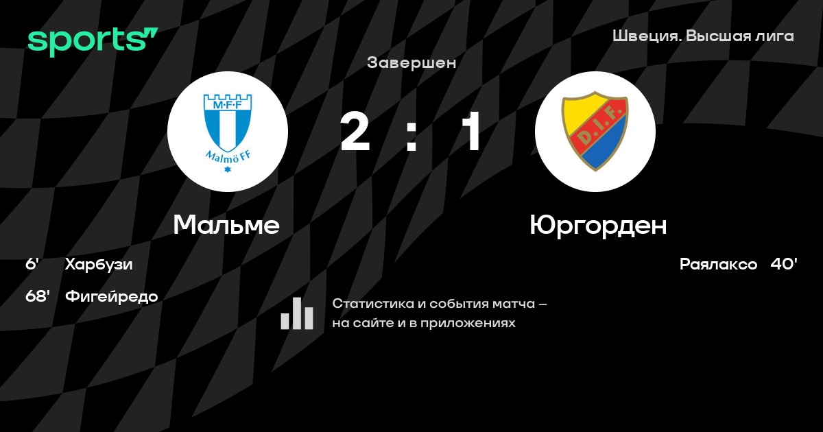 Сандквист - Андерссон, Рикардиньо, Габриэл, Диксон, Винсентс - Фигейредо, Харбузи, Перссон - Ларссон, Молинс