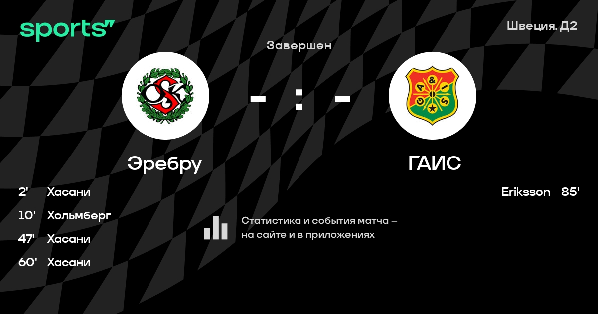| 2 | Эребру | 30 | 17 | 10 | 3 | 52 | 21 | +31 | 61 | ||