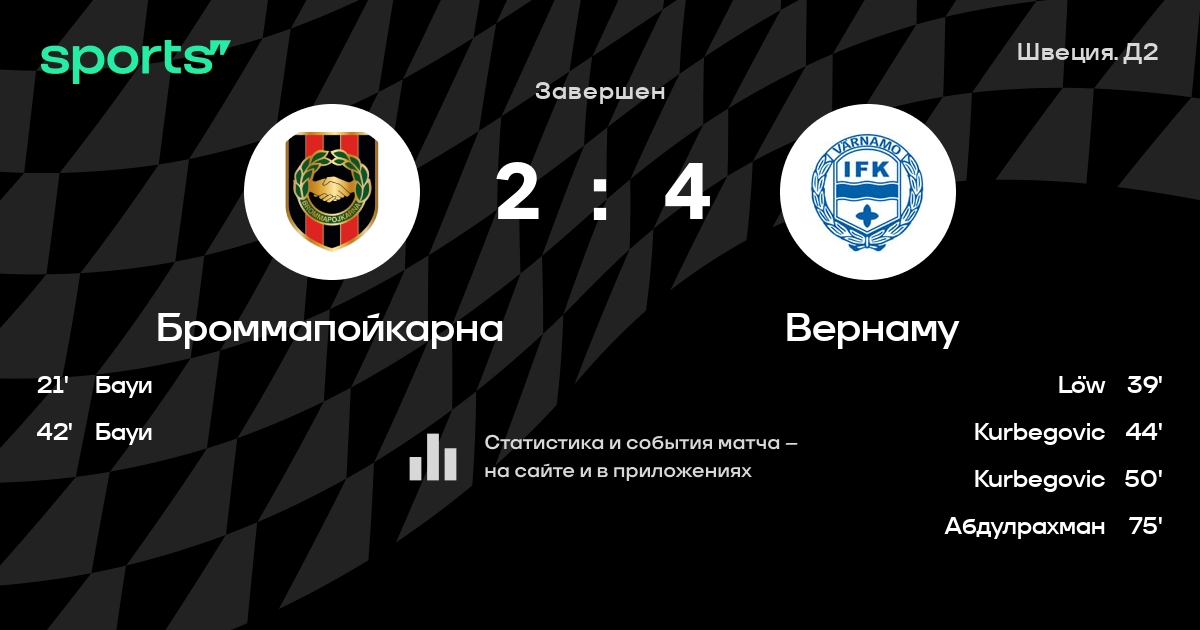 Halvorsen - Niklasson, Winsth, Ferman, Claesson - Kurbegovic, Löw, Халили, Косика, Zlojutro - FeriziЗапасные: Fransson, Хадениус, Ericson, Гаэте-Моджа, Göransson, Abdulrahman