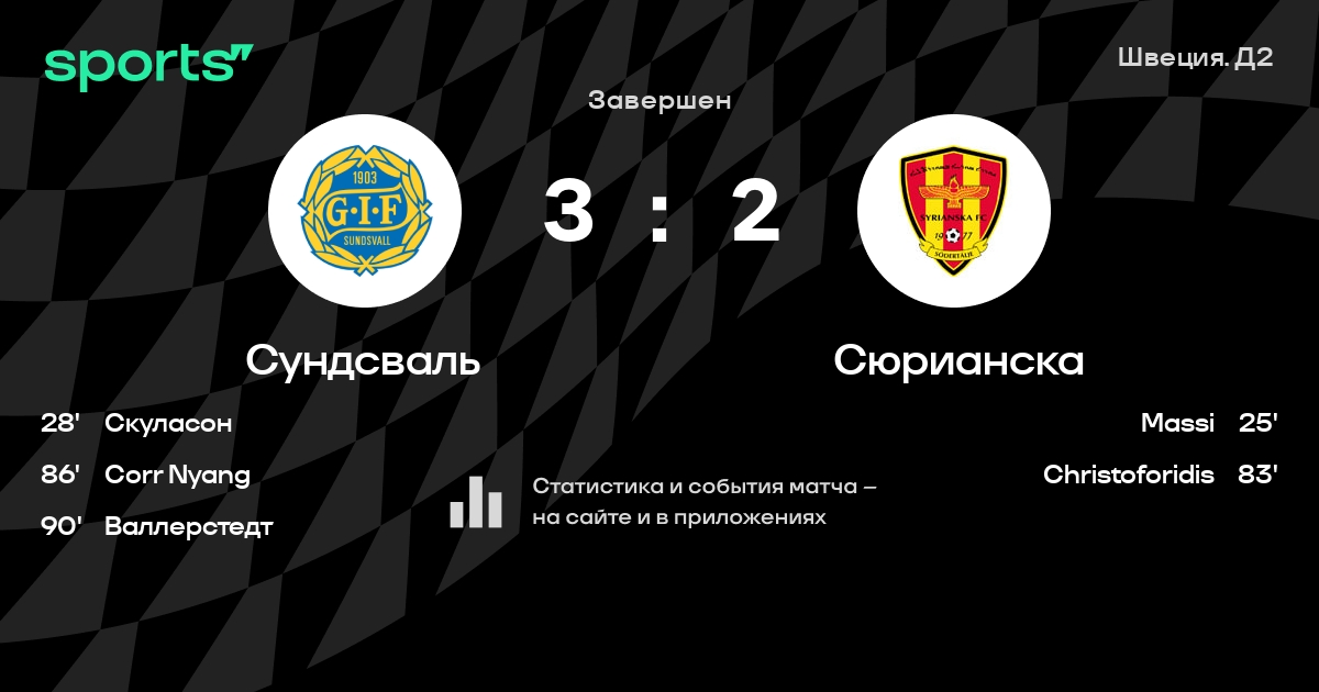 Sundfors - Мюрестам, Saglik, Berntsson, Бринк - Слипер, Валлерстедт, Ongala, Mambo Mumba, Скуласон - Corr Nyang