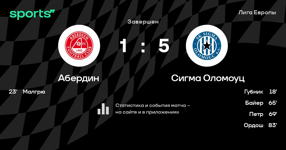 Абердин - Сигма Оломоуц: статистика матча