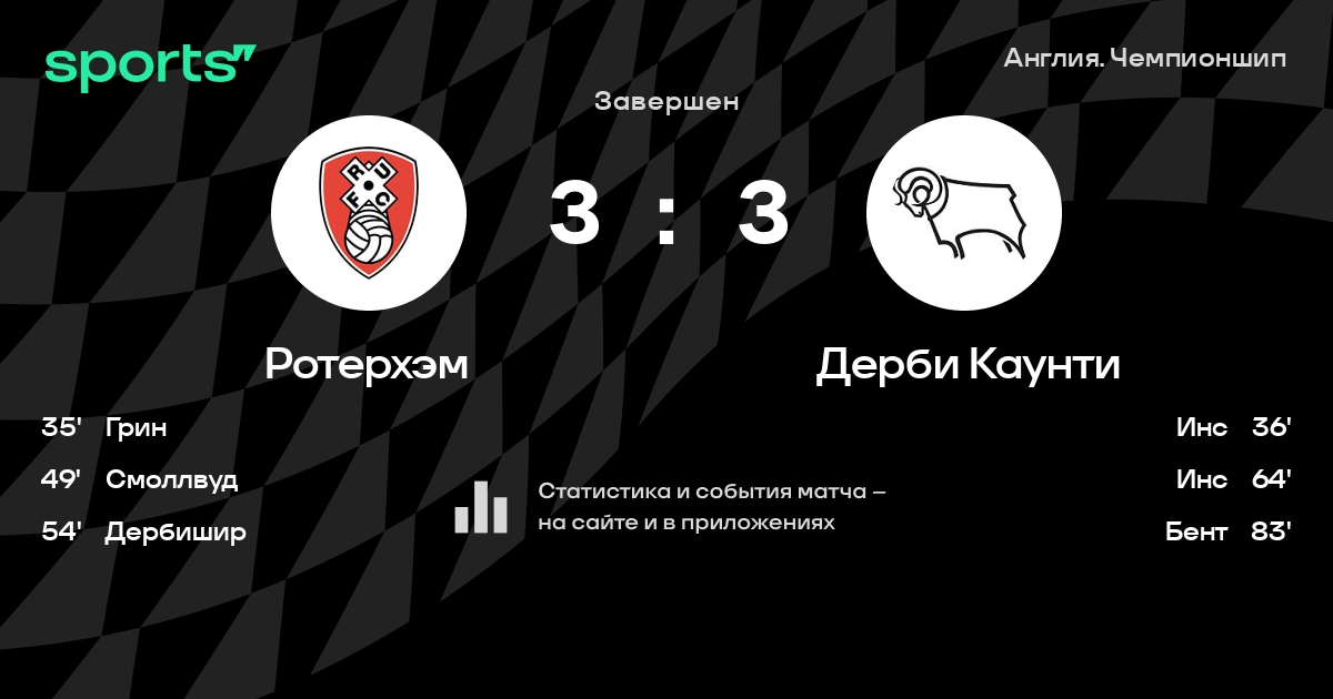 Коллин - Фрайерс, Арнасон, Броудфут, Хант - Милсом, Уорд, Смоллвуд, Грин, Прингл - ДербиширЗапасные: Лоуч, Ричардсон, Вуд, Боуэри, Хэммилл, Ньютон, Кларк-Харрис