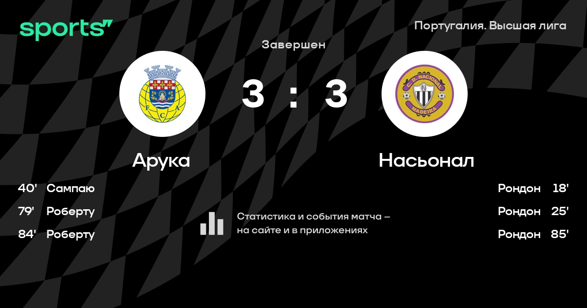 Готтарди - Коррейя, Заинадин, Жоау Аурелиу, Марсал - Газаль, Луиш Аурелиу, Тиагу Родригеш - Матиаш, Лукаш Жоау, РондонЗапасные: Руй Силва, Нуну Кампуш, Эдгар Абреу, Фофана, Барбоза, Вагнер, Соарес