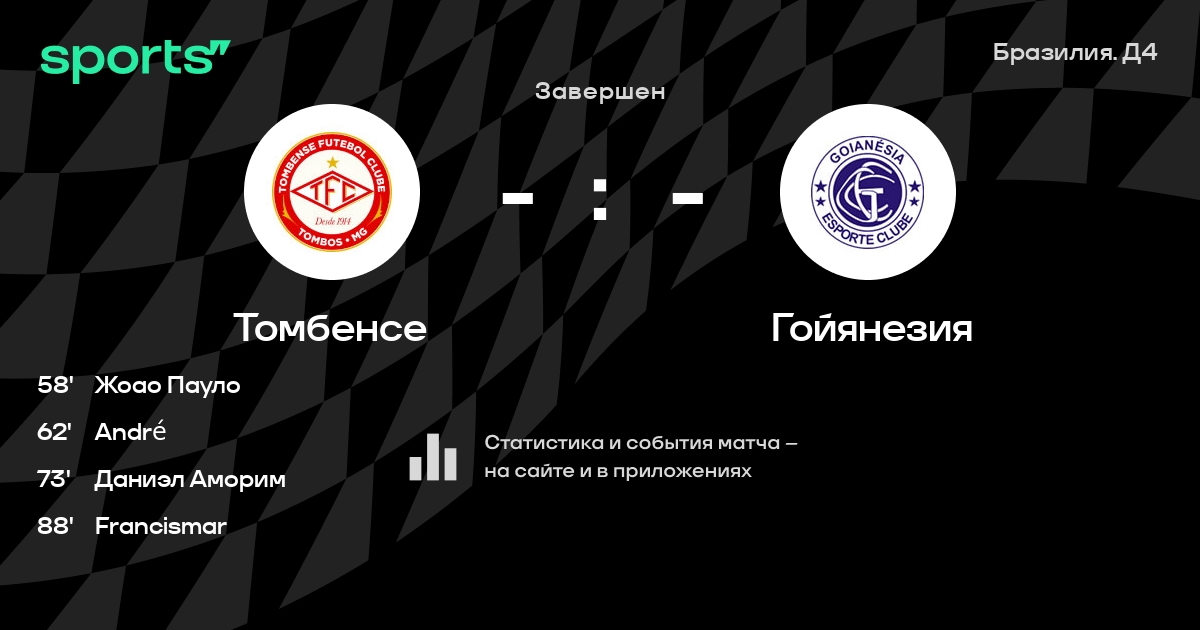 Дарлей - dos Santos Filho, Oliveira dos Reis, Жедеилсон, Жоао Пауло - Матеус Силва, Carioca de Oliveira, Жуниньо, de Souza, Жоилсон - Carreiro da SilvaЗапасные: Виктор, França de Moraes, Эйтор, Calisto, Осмар Мазиньо, Вагнер Гомес, Бетиньо, Элвис, Даниэл Аморим
