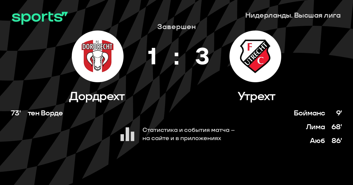 Чемпионат Голландии. 9-й тур. «Дордрехт» проиграл «Утрехту» и другие результаты