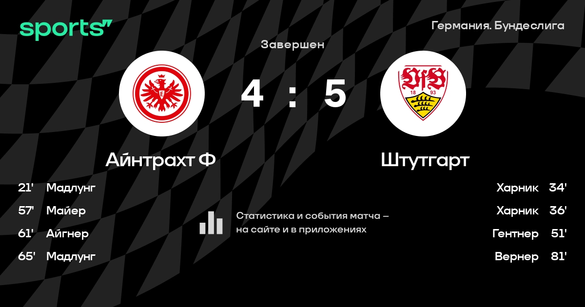 Киршбаум - Сакаи, Нидермайер, Швааб, Кляйн - Ромеу, Гентнер, Костич, Максим, Сарарер - ХарникЗапасные: Влаходимос, Агги, Рауш, Глоушек, Рюдигер, Груэсо, Вернер