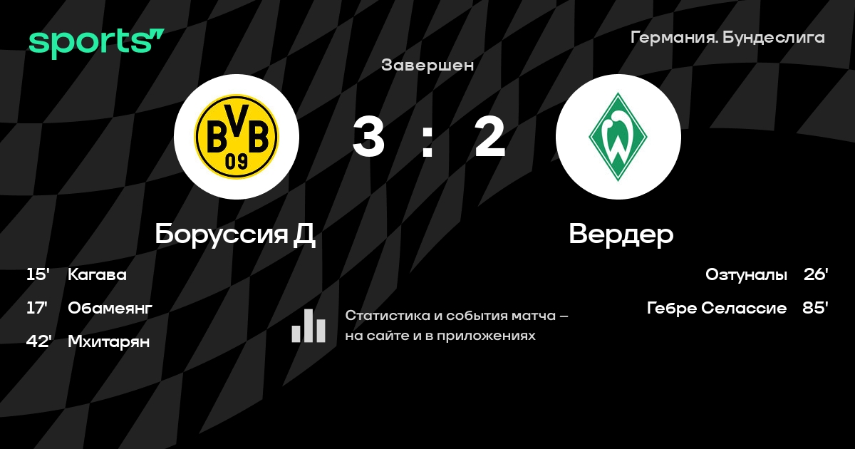 Вайденфеллер - Шмельцер, Хуммельс, Суботич, Дурм - Кель, Гюндоган, Ройс, Кагава, Мхитарян - ОбамеянгЗапасные: Лэнгерак, Папастатопулос, Йойич, Кампль, Иммобиле