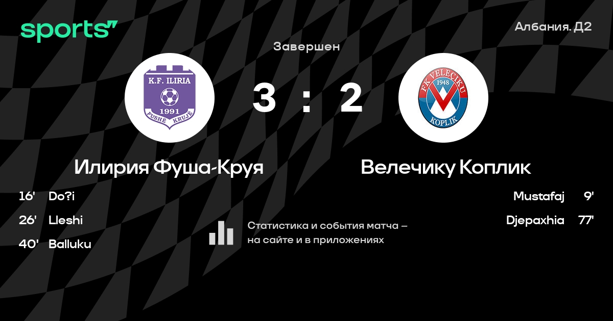 Трансляция Илирия Фуша-Круя - Велечику Коплик