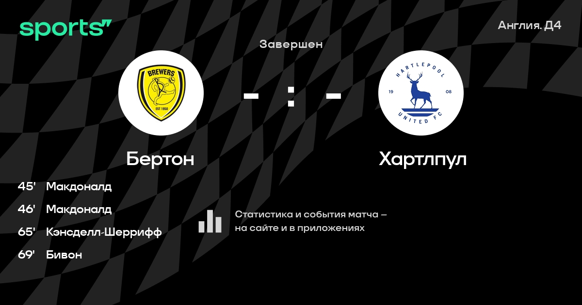 Маклафлин - Маккрори, Кэнсделл-Шеррифф, Мусиньо, Эдвардс - Макдоналд, Ленихан, Уэйр, Моррис - Блит, БивонЗапасные: Мэттьюз, Тафт, Палмер, Харнесс, Макгерк, Ноулз