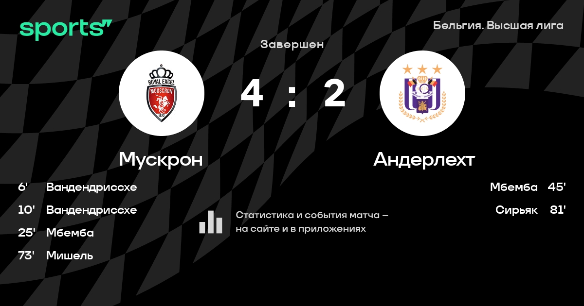 Прото - Ачимпонг, Десхахт, Мбемба, Ванден Борре - Клештан, Тилеманс, Кабаселе, Конте, Прат - Гои-БиЗапасные: Руф, Колен, Нсакала, Элен, Бастьен, Дендонкер, Кавайя