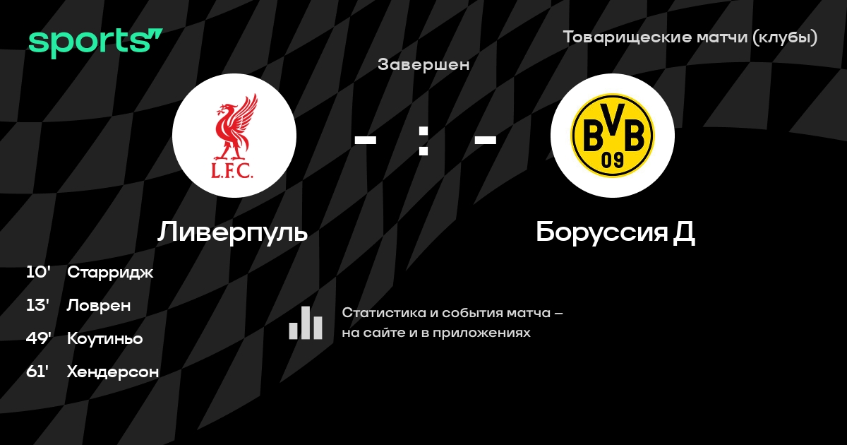 Миньоле - Ловрен, Манкильо, Шкртел, Джонсон - Коутиньо, Джан, Стерлинг, Джеррард, Хендерсон - СтарриджЗапасные: Джонс, Сако, Коатес, Келли, Энрике, Лейва, Аллен, Сусо, Ламберт, Айб
