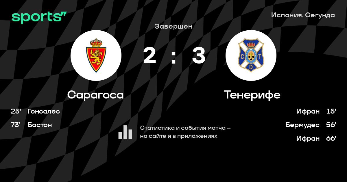 Сарагоса - Тенерифе: статистика матча