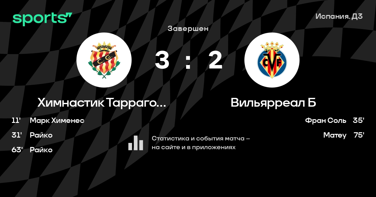 Химнастик Таррагона – Вильярреал Б: коэффициенты