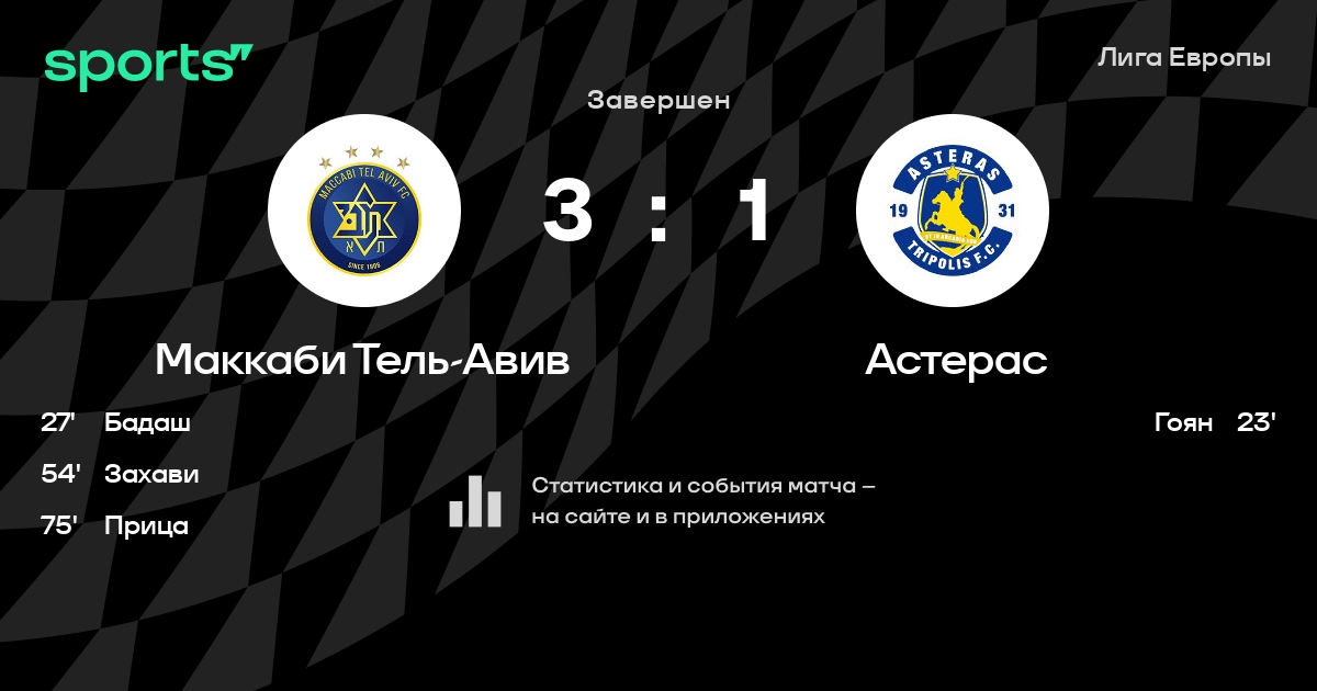 Маккаби Тель-Авив – Астерас: коэффициенты