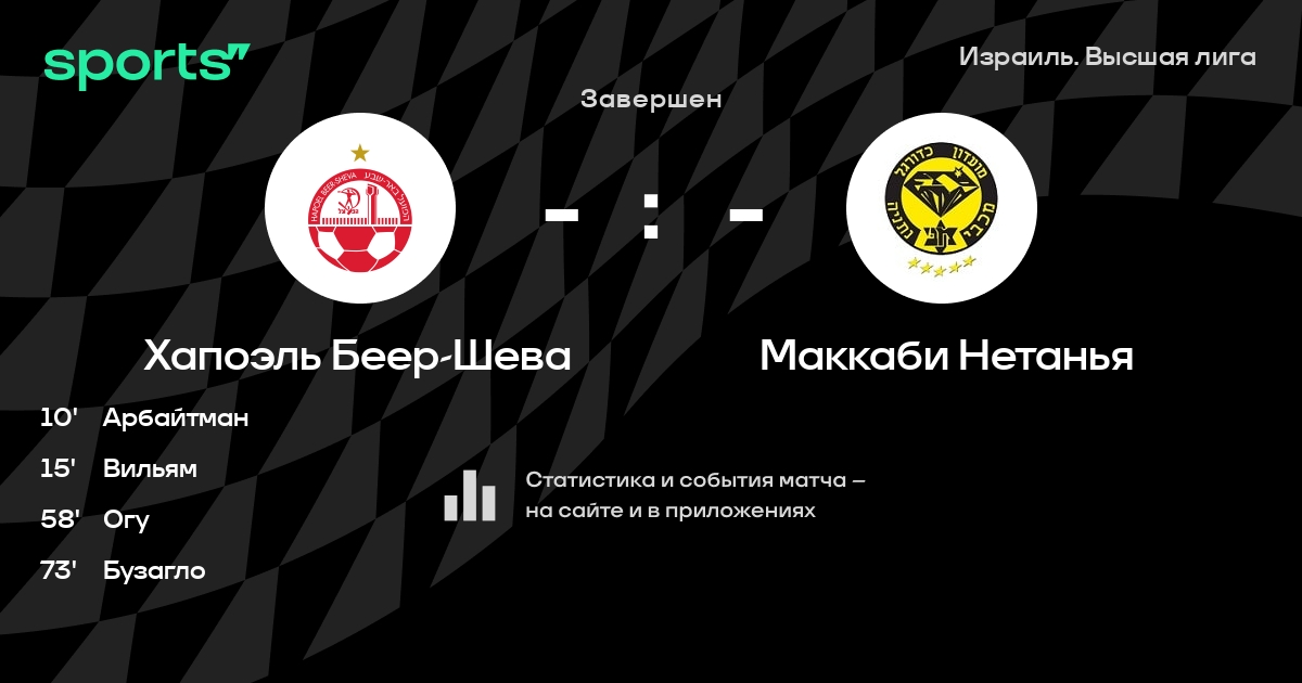Эджиде - Пайович, Давидзада, Вильям, Битон - Огу, Бузагло, Меликсон, Хобан - Арбайтман, БардаЗапасные: Левкович, Малуль, Илуз, Гордана, Нассар, Абу-Лабен