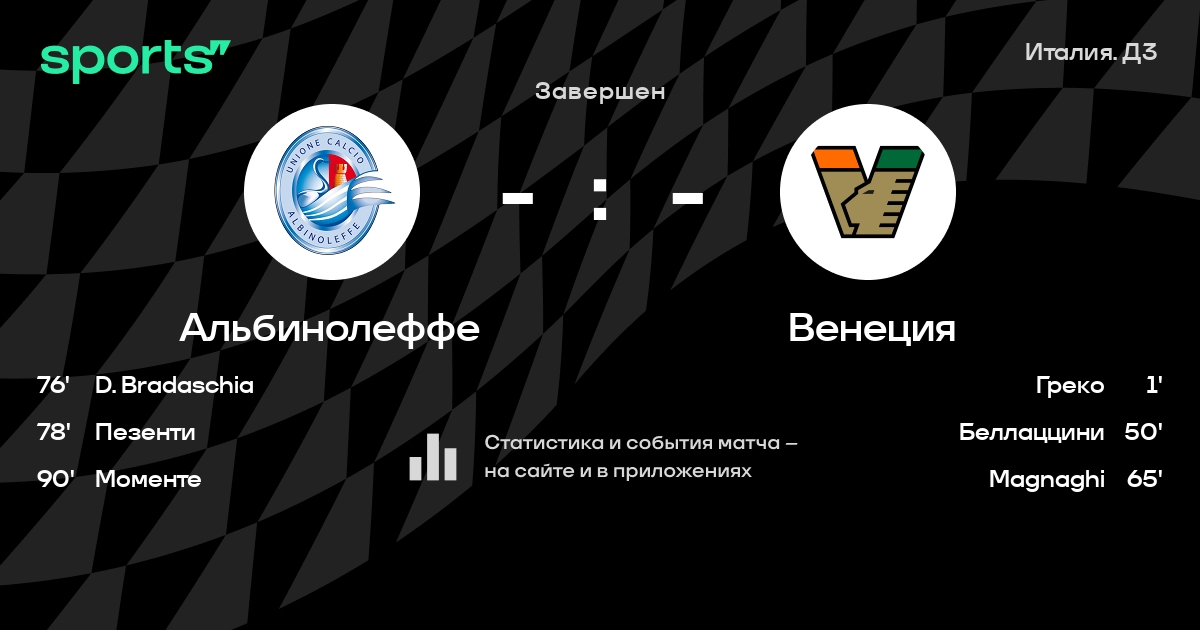 Фортунато - Легати, Чернуто, Sales, Capogrosso - Дзакканьи, Джорико, Беллаццини - Magnaghi, Греко, ГуэрраЗапасные: D'Arsiè, Dell'Andrea, Варано, Эспозито, Callegaro, Panfilo