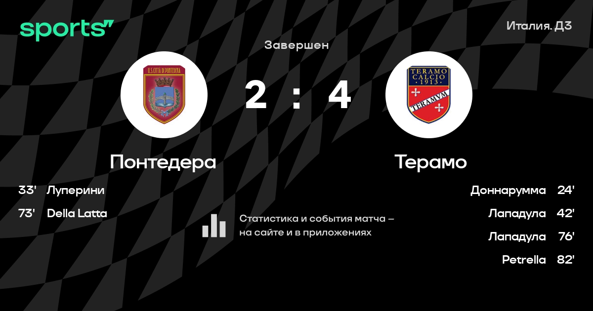Тонти - Masullo, Speranza, Диаките, Перротта, Scipioni - Ди Паолантонио, Cenciarelli, Амадио - Доннарумма, ЛападулаЗапасные: Серрайокко, Brugaletta, Лулли, D'Egidio, Petrella, Буонаюто, Bucchi