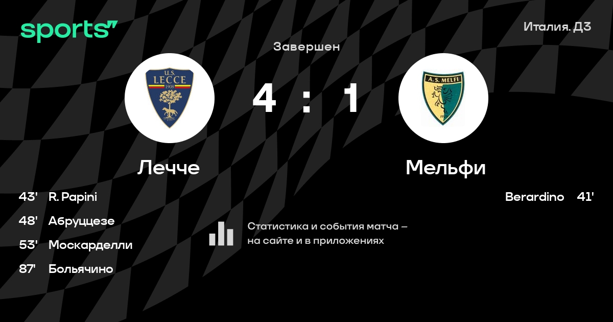 Кальони - Абруццезе, Лопес, Мартинес, Лепоре - Карроцца, Salvi, Papini, Маннини - Doumbia, МоскарделлиЗапасные: Петракки, Карини, Винето, Donida, Больячино, Della Rocca, Розафьо