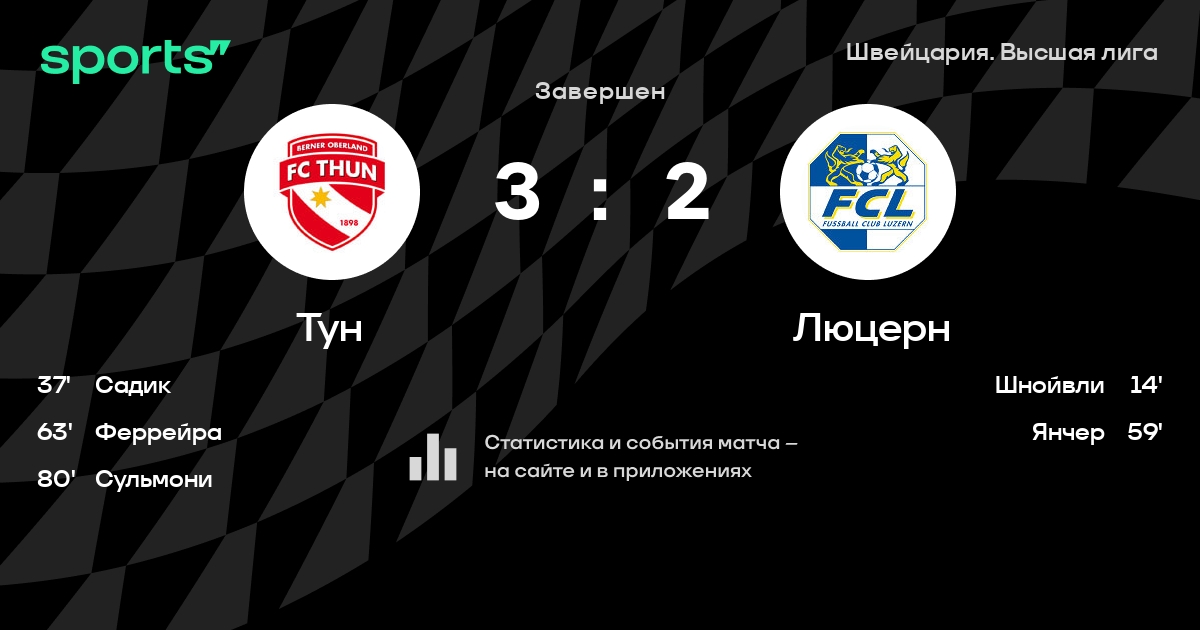 Фэвр - Райнманн, Глярнер, Сульмони, Гонсалес - Фронтино, Скиринци, Феррейра, Хедигер, Шнойвли - СадикЗапасные: Лейте, Виттвер, Шиндельхольц, Зигфрид, Биглер, Horta Magalhaes, Калуджерович