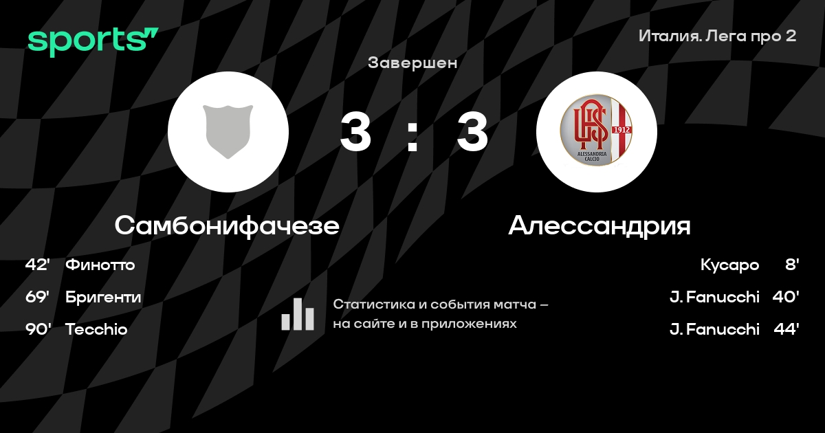 Самбонифачезе – Алессандрия: коэффициенты
