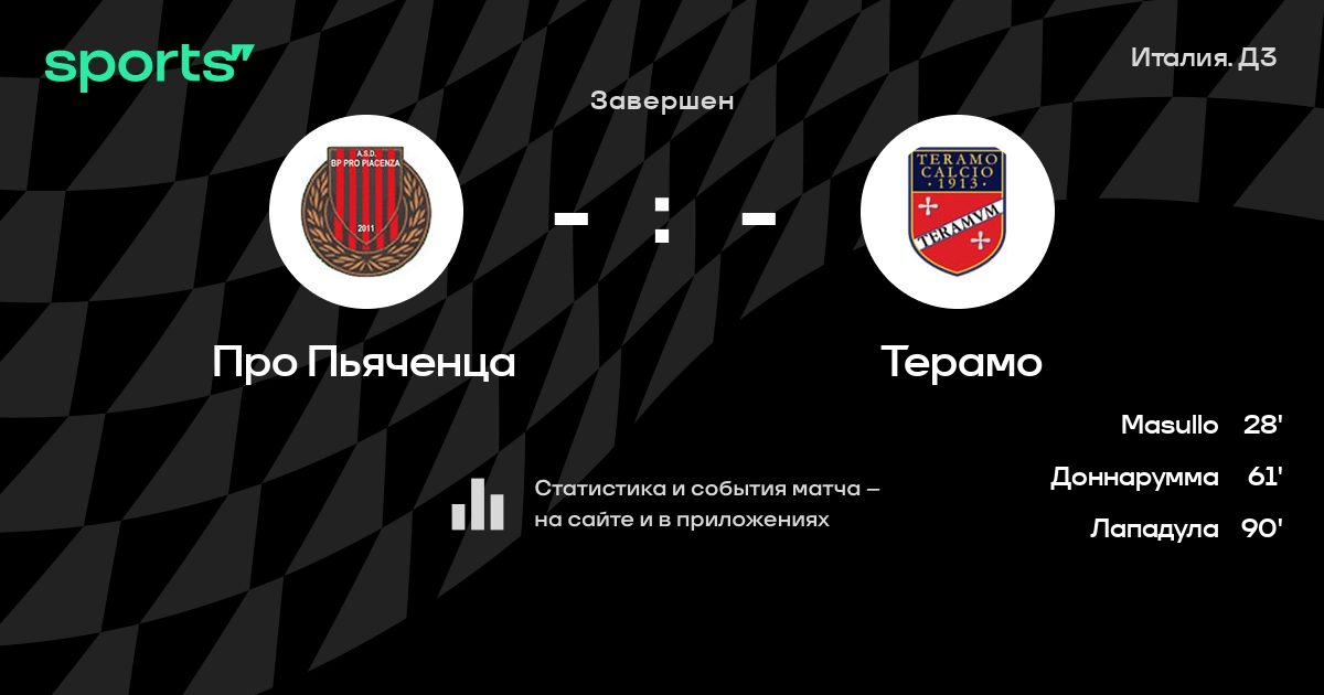 Тонти - Masullo, Speranza, Caidi, Перротта, Scipioni - Ди Паолантонио, Cenciarelli, Амадио - Доннарумма, ЛападулаЗапасные: Каппа, Brugaletta, Диаките, Миличевич, Ди Маттео, Petrella, Bucchi
